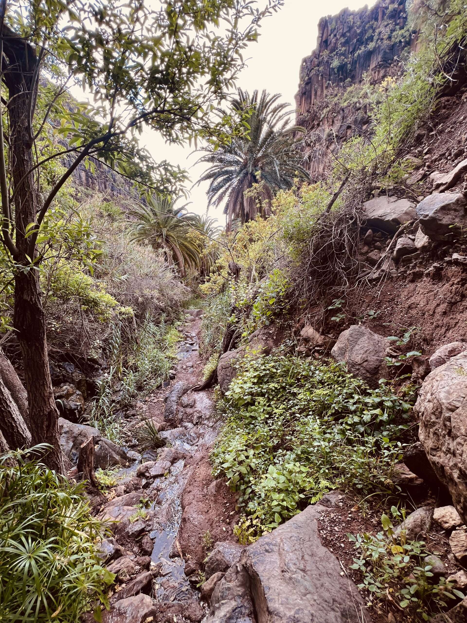 - Wir steigen in dem Künstlerdorf El Guro ein und gehen entlang einem Höhenpfad in den Barranco von Arure.